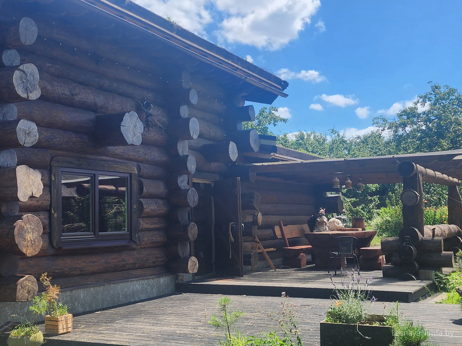 Проживание в выбранном доме, пользование кухней, мангалом, детской площадкой и природной территорией. Дополнительные услуги бронируются отдельно.
